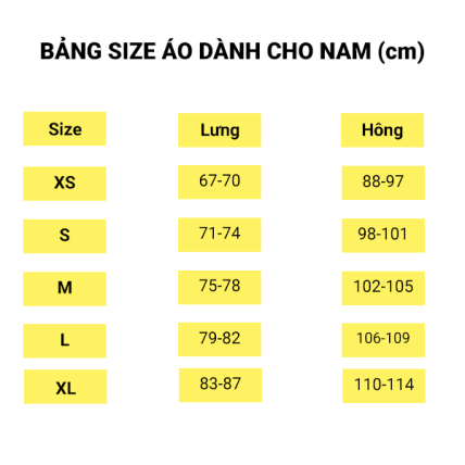| Size | Lưng (cm) | Hông (cm) |