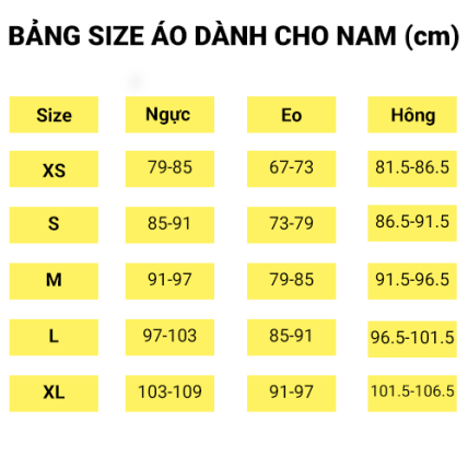 Bảng quy định size