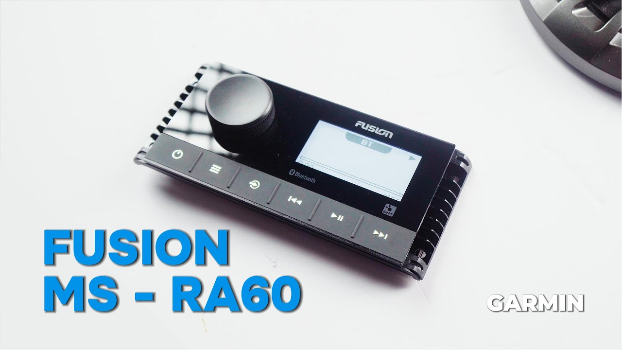 Fusion MS-RA60 là bộ đầu phát âm thanh chuyên dụng dành cho tàu thuyền, được tích hợp sẵn ampli 4 kênh và thường được dùng kèm với 2-4 loa EL Series. Thiết bị có thể phát nhạc qua Bluetooth, AUX, radio hoặc kết nối NMEA để có thể đồng bộ với hệ thống Garmin.