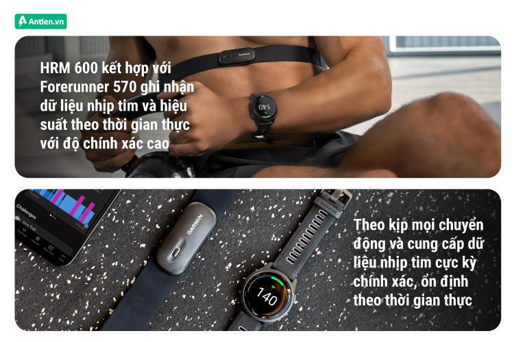Khi kết nối với Forerunner 570, HRM 200 trả dữ liệu chi tiết và chính xác về nhịp tim và hiệu suất