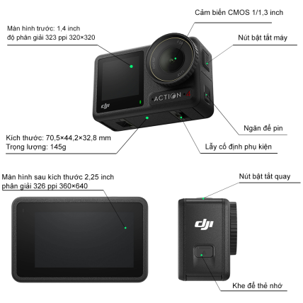 Những tính năng này biến Osmo Action 4 thành công cụ vừa gọn nhẹ vừa chuyên nghiệp, sẵn sàng đồng hành cùng bạn trong mọi dự án sáng tạo.