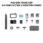 • Adventure Combo: nâng cấp hơn khi được trang bị thêm tổng là 3 pin, hộp sạc đa năng, gậy kéo dài và nhiều phụ kiện mở rộng khác, lý tưởng cho các chuyến đi dài hoặc quay vlog/outdoor liên tục.