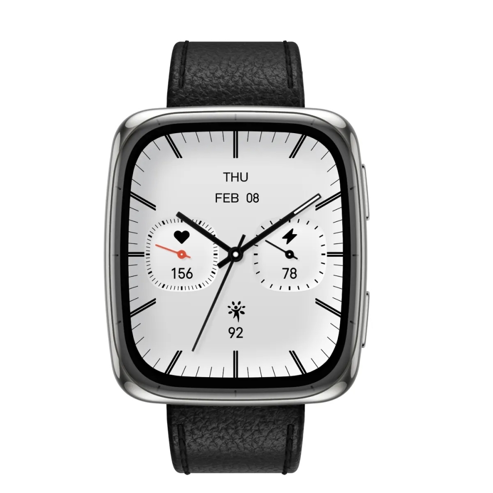 Amazfit Active 2 Square khoác lên mình thiết kế vuông vắn hiện đại, với kích thước gọn gàng 43.32 x 36.9 x 9mm và trọng lượng nhẹ chỉ 31.4g mang đến cảm giác đeo thoải mái mà vẫn đầy phong cách. Các đường bo cong mềm mại ở bốn góc kết hợp cùng thân máy bằng thép không gỉ được đánh bóng tỉ mỉ, tạo nên vẻ ngoài vừa thanh lịch vừa cứng cáp, sẵn sàng đồng hành cùng bạn trong mọi hoạt động thường ngày lẫn những buổi tập luyện cường độ cao.
