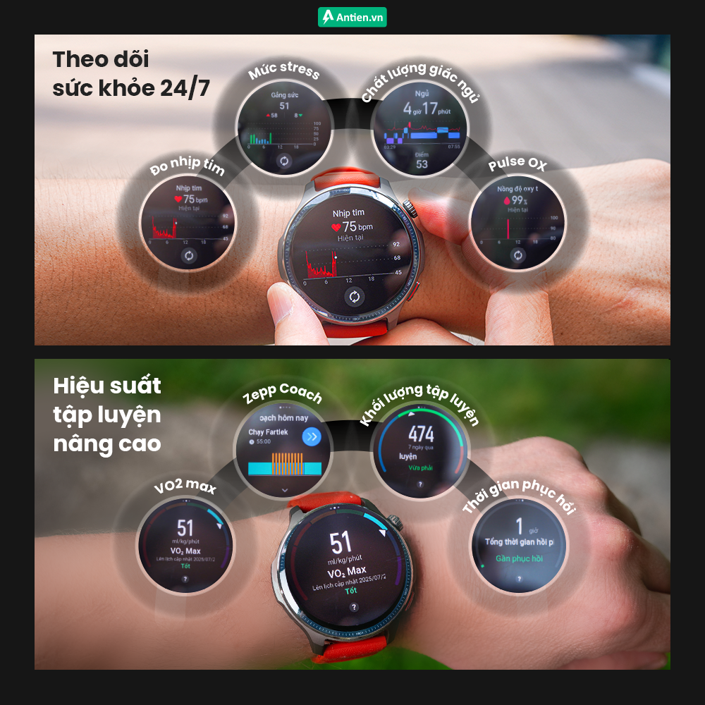 - Phân tích sau tập luyện: Nhận thông tin cập nhật về dữ liệu chuyên biệt như VO₂ max, khối lượng luyện tập, hiệu quả luyện tập và thời gian phục hồi giúp bạn biết chính xác khi nào nên nghỉ ngơi hay tăng tốc.