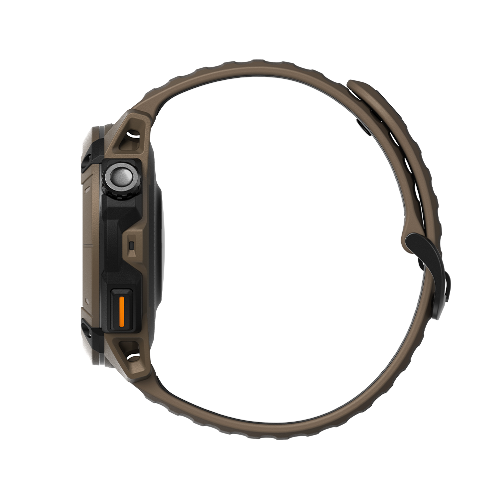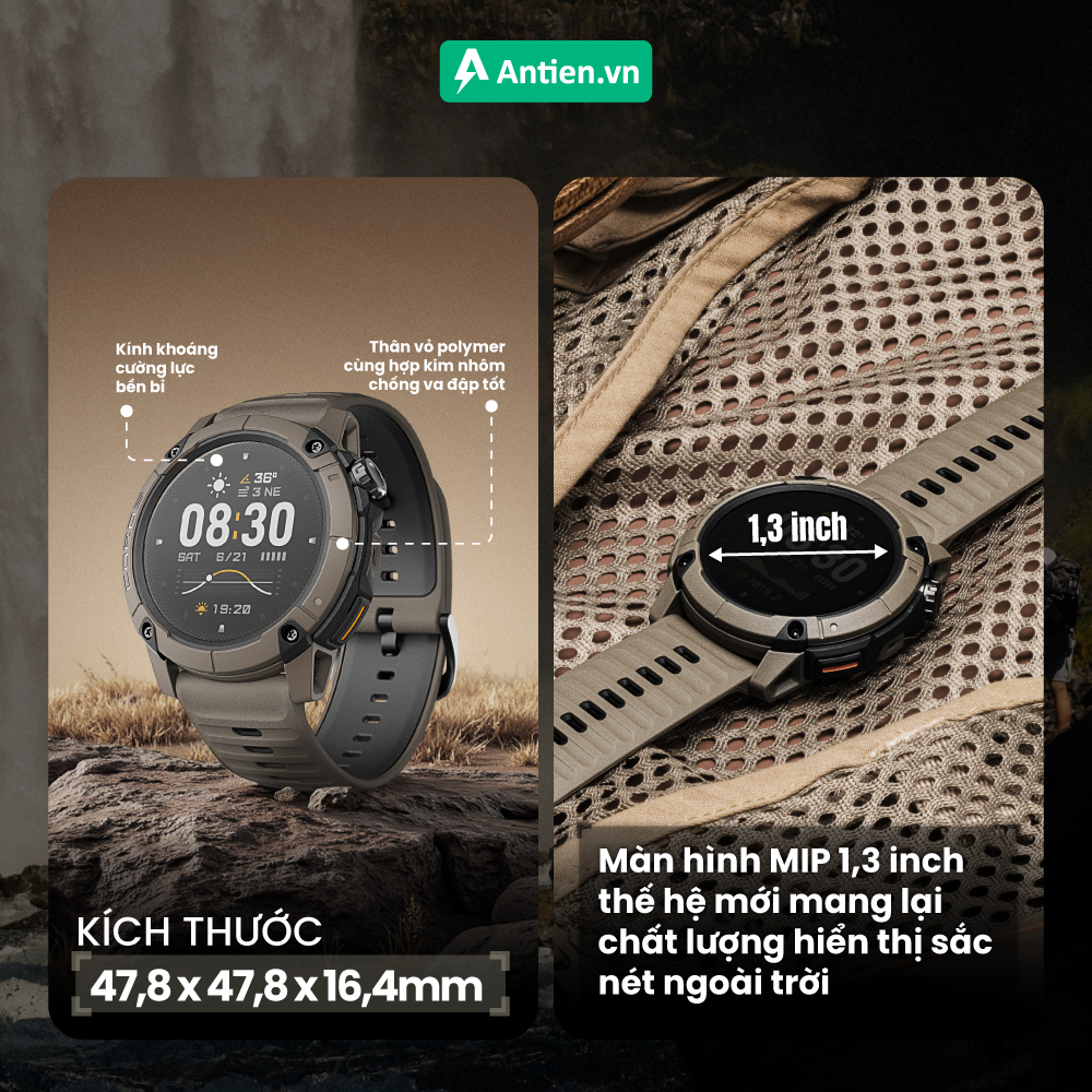 Sở hữu kích thước 47,8 x 47,8 x 16,4mm, trọng lượng chỉ từ 41g đến 68g tùy dây đeo, NOMAD mang lại cảm giác chắc chắn nhưng vẫn nhẹ nhàng khi đeo lâu. Viền bezel được thiết kế nhô cao, giúp bảo vệ màn hình khỏi va đập trong những tình huống khắc nghiệt.