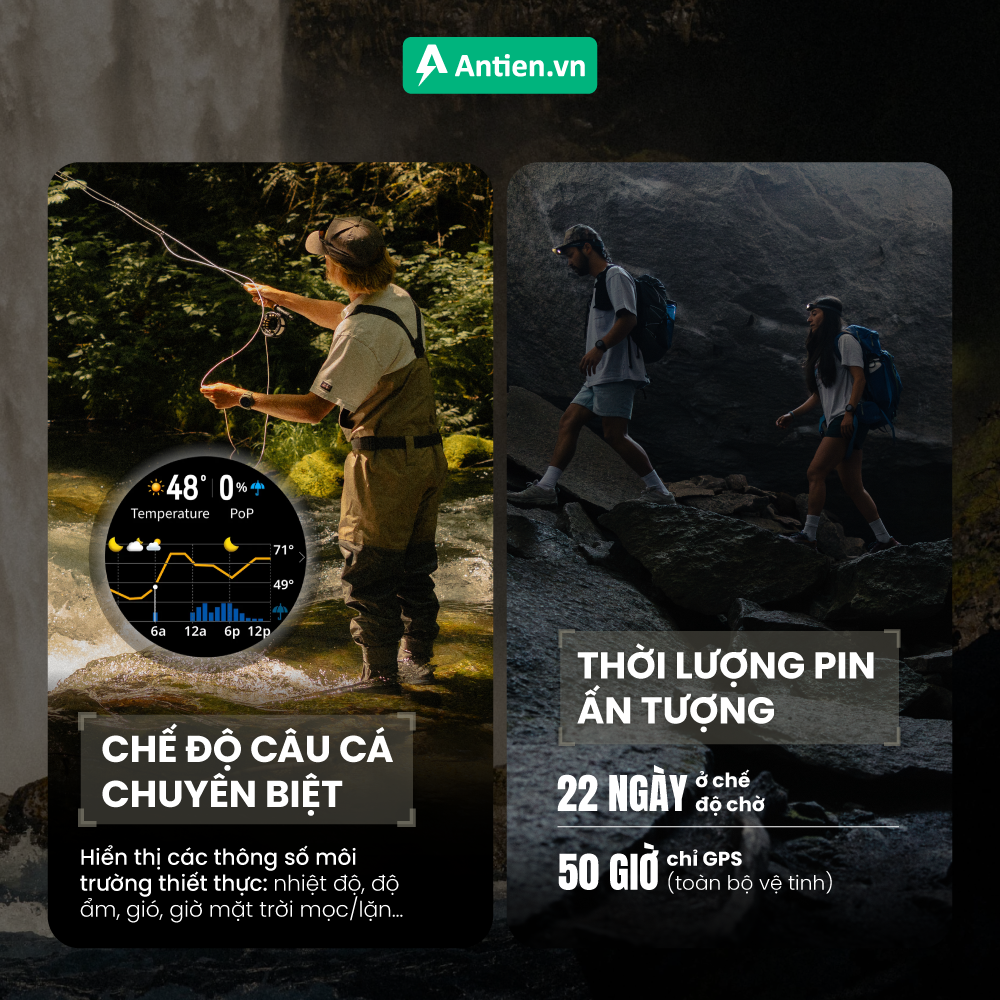 Không chỉ dành cho chạy bộ hay leo núi, smart watch NOMAD còn cực kỳ hữu ích với những ai đam mê câu cá. Đồng hồ sẽ cung cấp thông số môi trường theo thời gian thực, giúp bạn biết được thời điểm lý tưởng để thả cần, từ đó tăng cơ hội thành công.