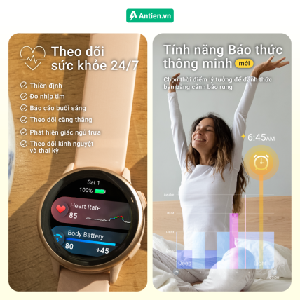 Một cải tiến đáng giá - Vivoactive 6 là chiếc đồng hồ thông minh đầu tiên của Garmin có tính năng Báo thức thông minh. Không đánh thức bạn vào một thời điểm cố định như báo thức truyền thống. Thay vào đó, nó quan sát các giai đoạn giấc ngủ như ngủ sâu, ngủ nhẹ, REM và chọn thời điểm lý tưởng để đánh thức bạn bằng cảnh báo rung trong khoảng thời gian đã thiết lập - tức là khi bạn đang ở giai đoạn ngủ nhẹ, dễ tỉnh nhất nhằm mục đích giảm tình trạng uể oải liên quan đến việc thức dậy sau giấc ngủ sâu.