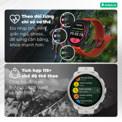 Với hơn 115 chế độ thể thao tích hợp, từ chạy trail, bơi lội, đạp xe leo núi, trượt tuyết, luyện sức bền cho đến những bài tập indoor chuyên sâu, Race 2 đều cung cấp phân tích chính xác và phản hồi kịp thời, giúp bạn bứt phá giới hạn bản thân mỗi ngày.