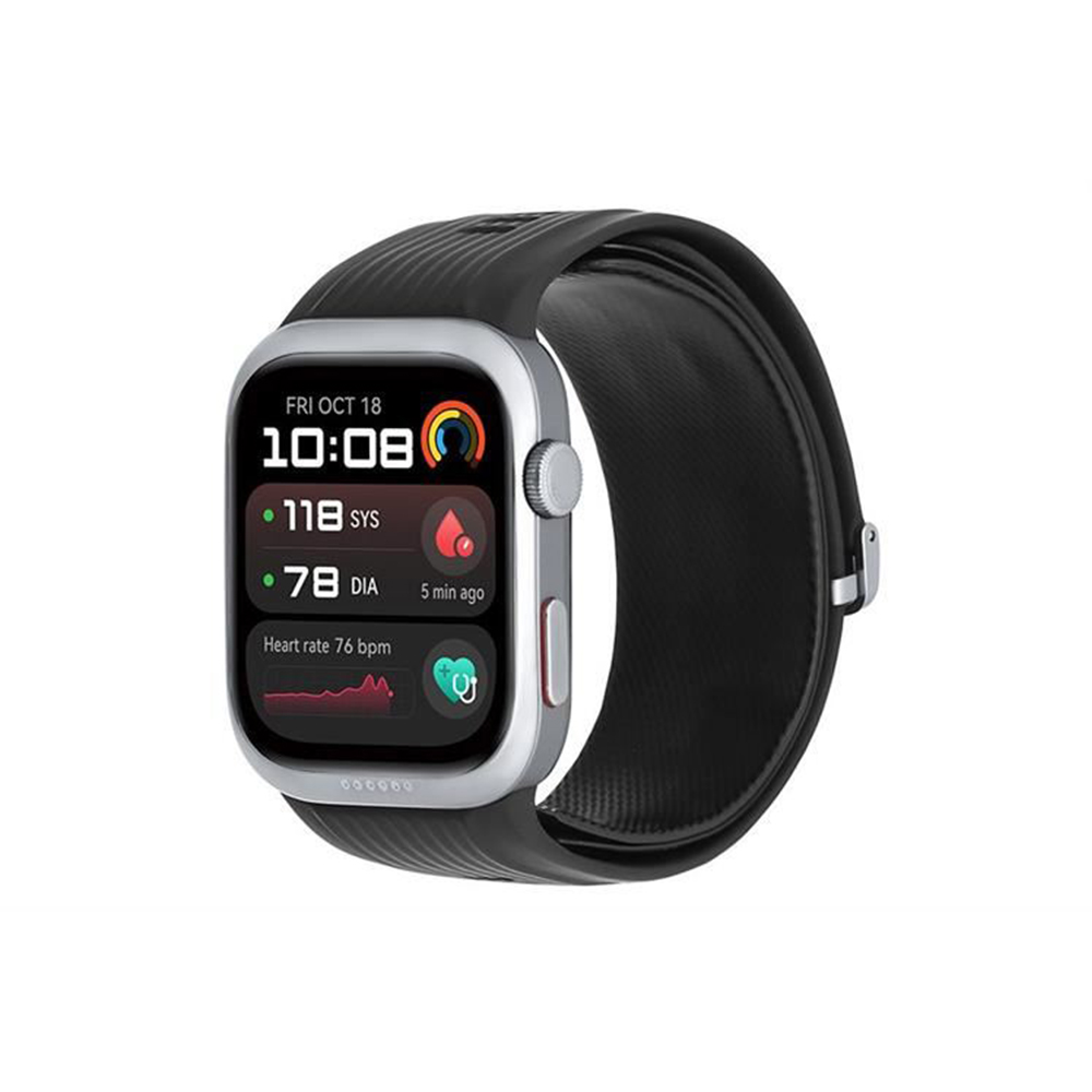 Đặc biệt, tính năng theo dõi huyết áp động của Watch D2 mang đến sự tiện lợi vượt trội. Nhờ hệ thống TruSense mới với cảm biến áp suất chính xác, máy bơm mini và túi khí siêu mỏng tích hợp trong dây đeo, đồng hồ có thể đo huyết áp của bạn mọi lúc dù đang làm việc, thư giãn hay ngủ say. Các chỉ số như huyết áp tâm thu (SBP), huyết áp tâm trương (DBP) và nhịp tim trung bình 24 giờ đều được ghi lại chi tiết, giúp bạn hiểu rõ hơn về cơ thể và chủ động chăm sóc sức khỏe mỗi ngày.