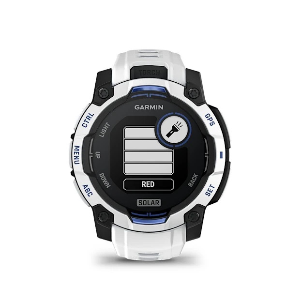Đèn pin LED đa chế độ lần đầu được tích hợp trên tất cả các phiên bản Instinct 3, không chỉ ở dòng Solar. Đèn này có nhiều mức sáng và chế độ nhấp nháy rất hữu ích cho các hoạt động ban đêm như cắm trại, đi bộ đường dài hoặc tìm đồ vật trong bóng tối. Đồng thời giúp dễ dàng quan sát bản đồ, la bàn, hoặc các công cụ khác mà không cần mang theo đèn pin riêng và cải thiện khả năng nhận diện khi đi bộ đường dài hoặc chạy trail vào sáng sớm hoặc tối muộn.