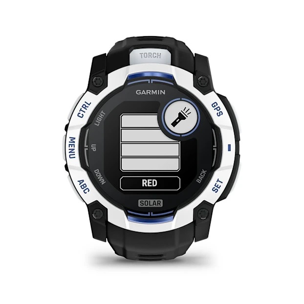 Đèn pin LED đa chế độ lần đầu được tích hợp trên tất cả các phiên bản Instinct 3, không chỉ ở dòng Solar. Đèn này có nhiều mức sáng và chế độ nhấp nháy rất hữu ích cho các hoạt động ban đêm như cắm trại, đi bộ đường dài hoặc tìm đồ vật trong bóng tối. Đồng thời giúp dễ dàng quan sát bản đồ, la bàn, hoặc các công cụ khác mà không cần mang theo đèn pin riêng và cải thiện khả năng nhận diện khi đi bộ đường dài hoặc chạy trail vào sáng sớm hoặc tối muộn.
