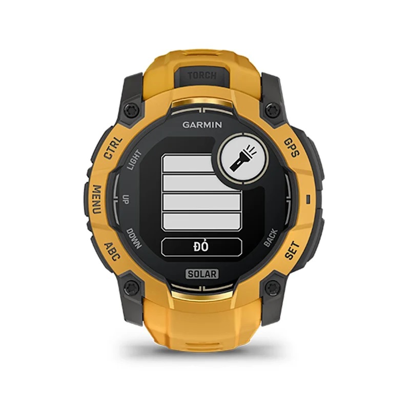 Đèn pin LED đa chế độ lần đầu được tích hợp trên tất cả các phiên bản Instinct 3, không chỉ ở dòng Solar. Đèn này có nhiều mức sáng và chế độ nhấp nháy rất hữu ích cho các hoạt động ban đêm như cắm trại, đi bộ đường dài hoặc tìm đồ vật trong bóng tối. Đồng thời giúp dễ dàng quan sát bản đồ, la bàn, hoặc các công cụ khác mà không cần mang theo đèn pin riêng và cải thiện khả năng nhận diện khi đi bộ đường dài hoặc chạy trail vào sáng sớm hoặc tối muộn.