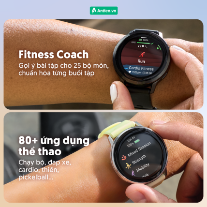 - Hệ thống đề xuất bài tập hàng ngày và huấn luyện trực tiếp trên cổ tay sẽ gợi ý bài tập phù hợp thể trạng hiện tại.