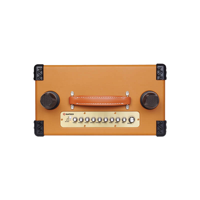 Toàn bộ thân loa Sumico BT-S52 được bọc da PU màu vàng cam tươi, tạo cảm giác vừa sang trọng vừa nổi bật, giúp loa dễ dàng trở thành điểm nhấn trong mọi không gian, từ phòng khách, phòng ngủ cho tới các quán cà phê, studio nhỏ hay sân vườn gia đình, đồng thời tám góc cạnh của loa được bọc nhựa cứng giúp hạn chế va đập, sứt góc trong quá trình di chuyển, tăng độ bền khi sử dụng lâu dài và tạo cảm giác chắc chắn hơn khi đặt loa trên nhiều bề mặt khác nhau.