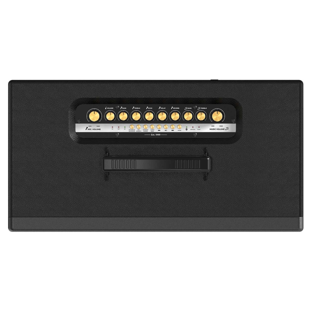 Tất cả nút điều chỉnh được bố trí phía trên mặt loa, có ký hiệu rõ ràng, cho phép người dùng dễ dàng tinh chỉnh âm lượng, âm sắc micro, echo hay nhạc nền phù hợp với từng chất giọng, giúp phần trình diễn trở nên mượt mà và chuyên nghiệp hơn.