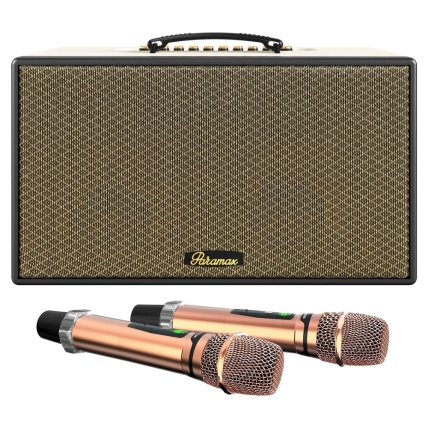 Paramax Aura đi kèm hai micro không dây UHF, cho chất lượng thu âm cao, không hú rít, không lẫn tạp âm. Micro có thiết kế vỏ nhôm chắc chắn, cầm nhẹ tay và thoải mái, khả năng lọc âm tốt giúp thể hiện giọng hát trung thực, chi tiết và đầy cảm xúc – lý tưởng cho karaoke, thu âm hoặc biểu diễn trực tiếp.
