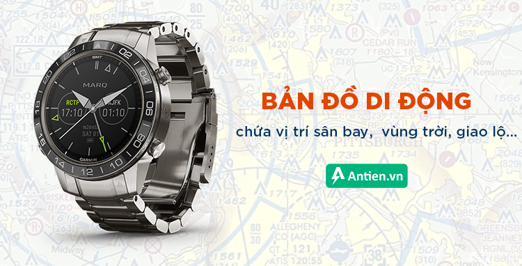 - Bản đồ di động: Được tải sẵn cơ sở dữ liệu hàng không trên toàn thế giới, đồng hồ phi công MARQ Aviator chứa các vị trí sân bay, thiết bị hỗ trợ điều hướng và tần số vô tuyến. Bạn dễ dàng xem đường bay của bạn có đi ngang qua các sân bay, vùng trời, giao lộ và các địa điểm bề mặt khác trên bản đồ chuyến đi đầy màu sắc.
