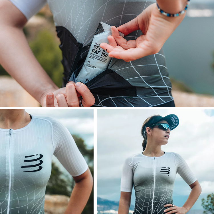 Tri Postural Aero SS Top được trang bị 2 túi chứa đồ phía sau chân áo và 1 túi bên trong trên ngực giúp chứa các vật dụng thiết yếu như gel năng lượng, muối điện giải,... giúp bổ sung năng lượng đã mất nhanh chóng cho hành trình tập luyện và thi đấu trở nên dễ dàng. Ngoài ra phần silicone trang bị quanh eo sẽ giúp vải không bị phồng lên quá nhiều, ngăn việc rung lắc khi chứa đồ trong lúc chạy gây mất trọng tâm cơ thể.