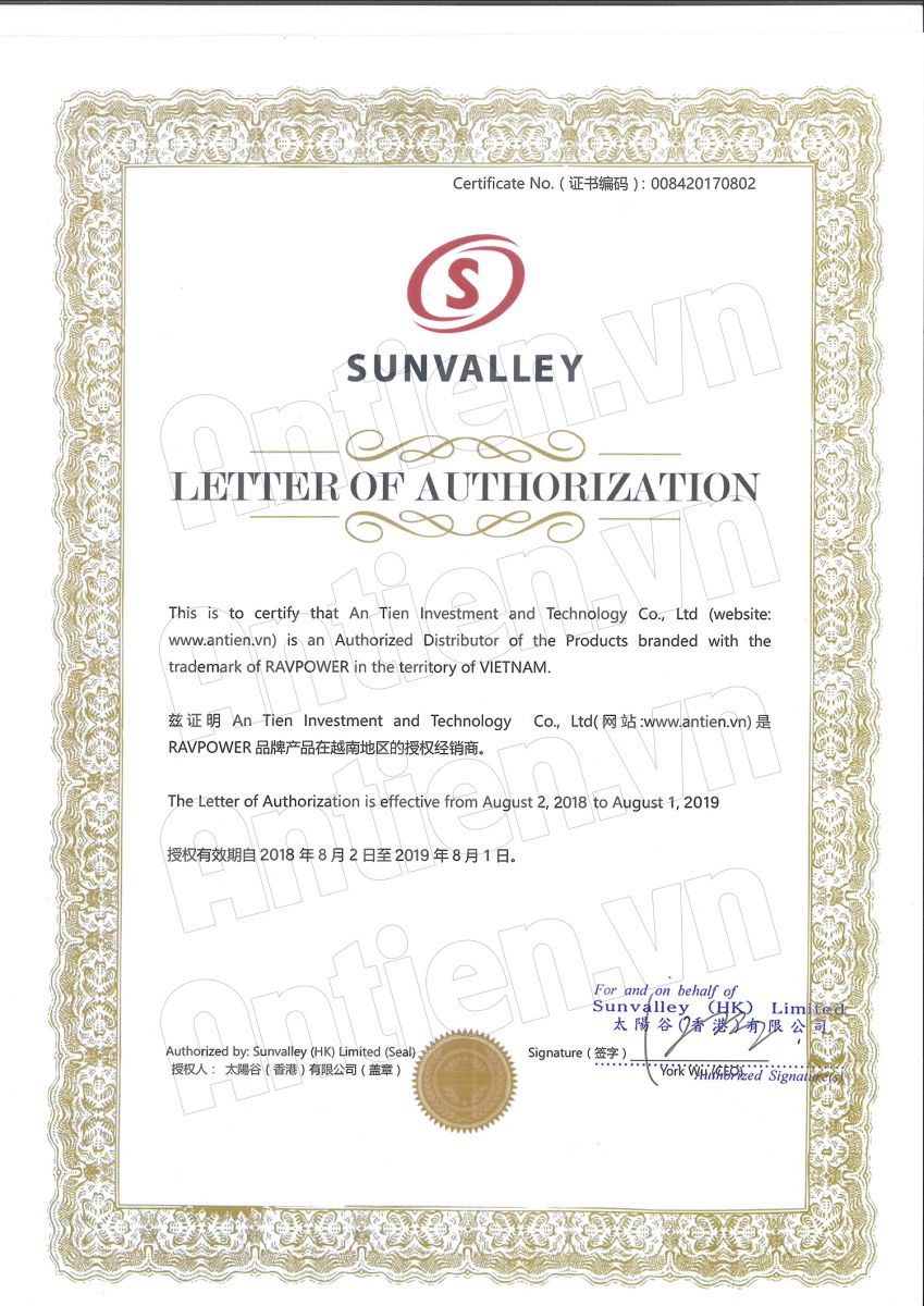 Chứng nhận đơn vị phân phối ủy quyền chính thức của RAVPOWER tại Việt Nam