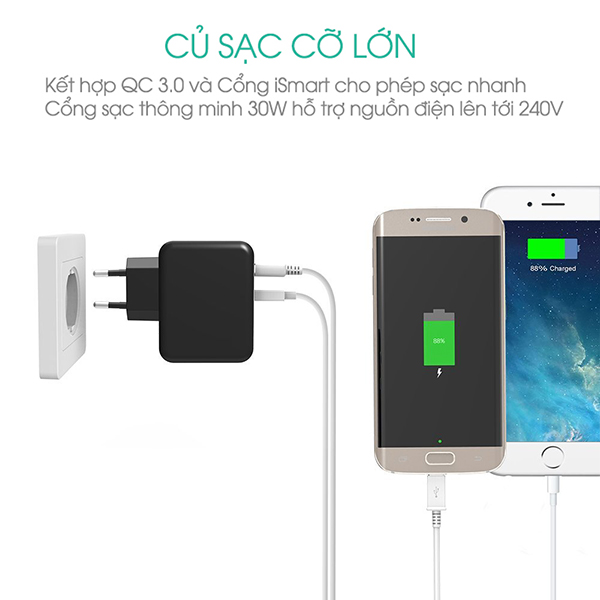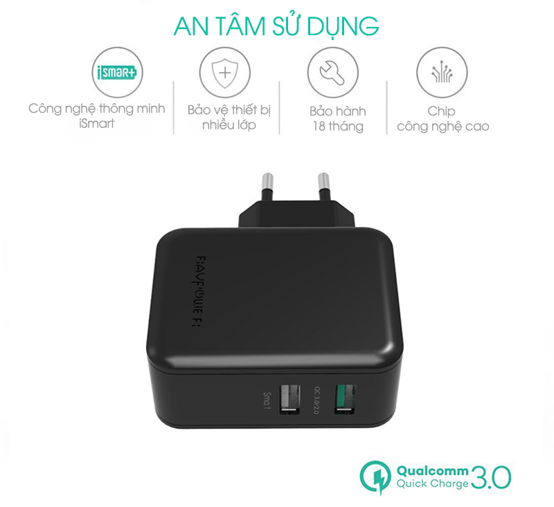 Sản phẩm được tích hợp chíp QUALCOMM 3.0 sạc nhanh: Công nghệ sạc USB nhanh nhất thế giới cung cấp tốc độ nhanh hơn 4 lần cho các thiết bị tương thích từ 0% đến 80% chỉ trong 35 phút.