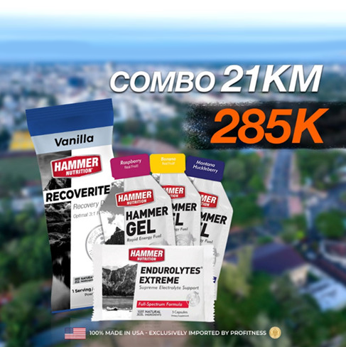 Qua nhiều nghiên cứu chi tiết, Hammer Nutrition đã mang đến cho các runner combo dinh dưỡng đáp ứng nhu cầu chạy trên nhiều cự ly khác nhau như 10km, 21km, 42km mà vẫn bổ sung đầy đủ các yếu tố nhằm đảm bảo được hiệu suất làm việc của cơ thể giúp các runner có thể chinh phục các thử thách mới bao gồm: