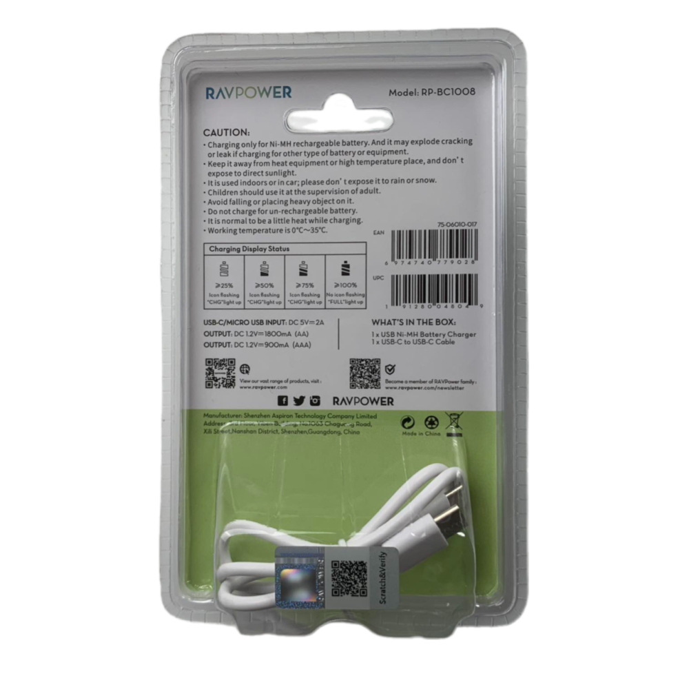 Đế sạc Ravpower RP-BC1008 tương thích với pin AA và AAA Ni-MH Ni-CA