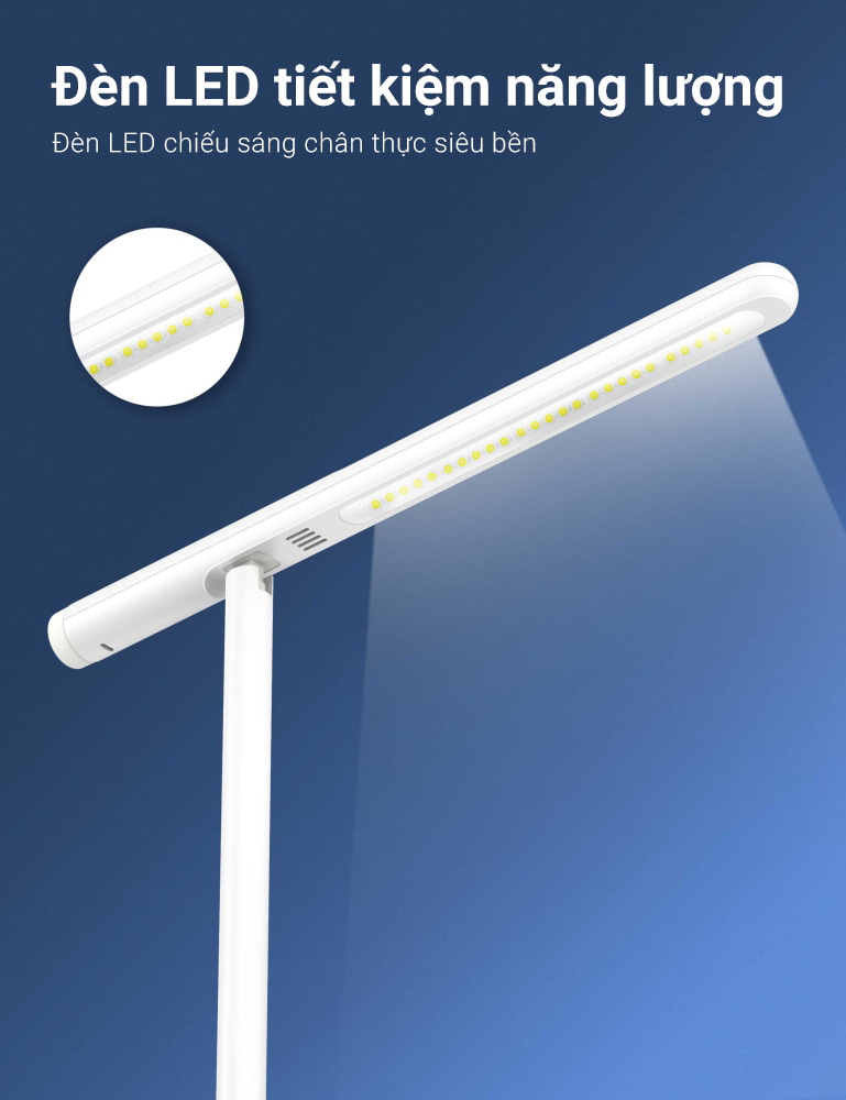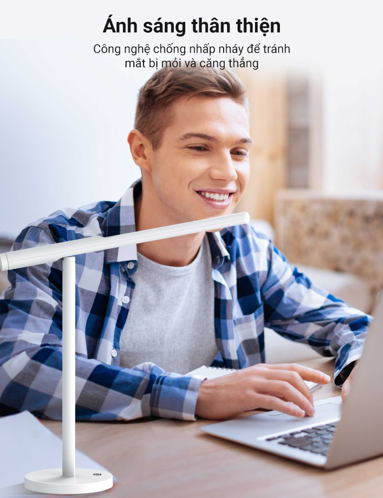 Đèn bàn phát ra ánh sáng ổn định, không bị lóa, không nhấp nháy do đó rất thân thiện với mắt do đó bạn có thể kéo dài được thời gian làm việc hay học tập của mình.