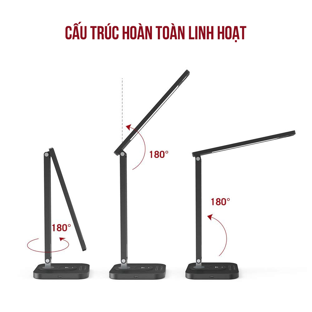 Đèn LED được thiết kế rất chắc chắn với cánh tay đèn có thể xoay lên đến 180° hoặc xoay đế 180° đảm bảo bạn luôn có được góc đọc hoàn hảo bất cứ nơi nào bạn ngồi.