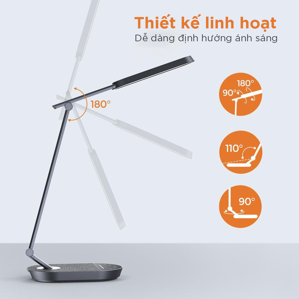 Với phần đầu và cánh tay có thể quay từ 110 - 180 độ, phần chân đê quay được 90 độ, Đèn bàn làm việc Taotronic TT-DL056 giúp bạn dễ dàng có được 1 góc chiếu sáng lý tưởng cho việc đọc sách của bạn.