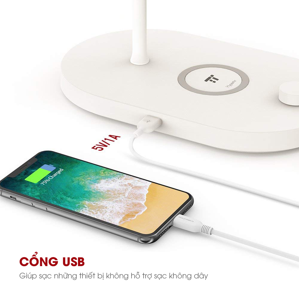 Ngoài ra đèn ngủ LED TaoTronics TT-CL009 còn có thêm 1 cổng USB cho phép bạn kết nối và sạc lại điện thoại thông minh hoặc máy tính bảng của bạn với dòng 5V / 1A. Như vậy bạn có thể cùng lúc sạc 2 thiết bị 1 qua đế sạc không dây, 1 qua cổng USB ngay trên chiếc đèn bàn thông minh này.