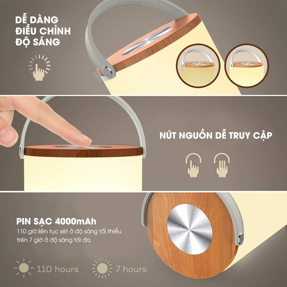 Ngoài ra với việc thiết kế có 1 quai xách bạn có thể dễ dàng mang đèn đi lại giữa các phòng hay đi ra ngoài sân 1 cách linh hoạt. Bật / tắt đèn bằng một cú chạm đơn giản trên bảng điều khiển cảm ứng được đặt thuận tiện ở đầu đèn để dễ dàng thao tác khi đèn tắt.