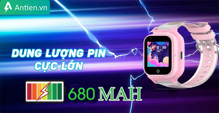 Wonlex KT07 4G được trang bị pin Lithium-Polymer dạng Gel với dung lượng khổng lồ 680mAh cho thời gian sử dụng siêu dài, thời gian chờ lên tới 100 giờ.