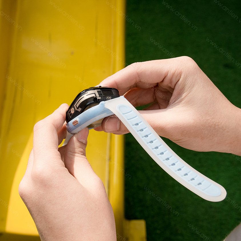 Wonlex KT07 4G được thiết kế với form nhỏ gọn, ôm tay. Dây đeo Silicon cao cấp, kháng khuẩn và không gây kích ứng da.