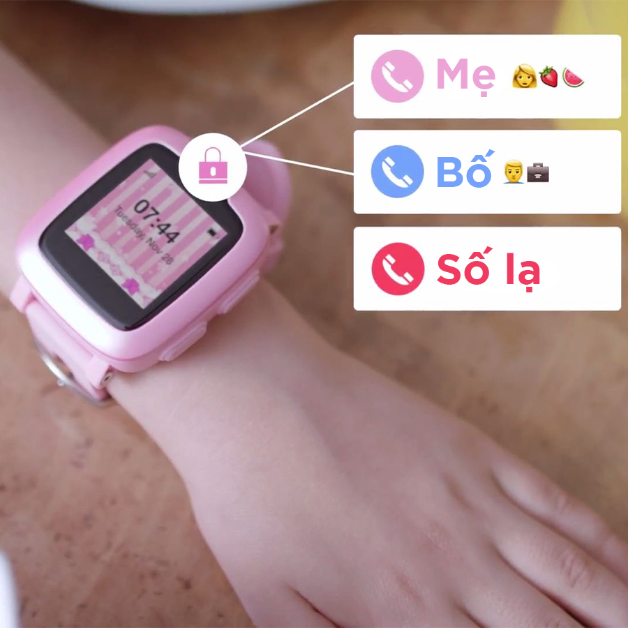• Kiểm soát danh bạ: Danh bạ trên đồng hồ được quản lý bởi người giám hộ, trẻ không gọi được cho những số ngoài danh bạ