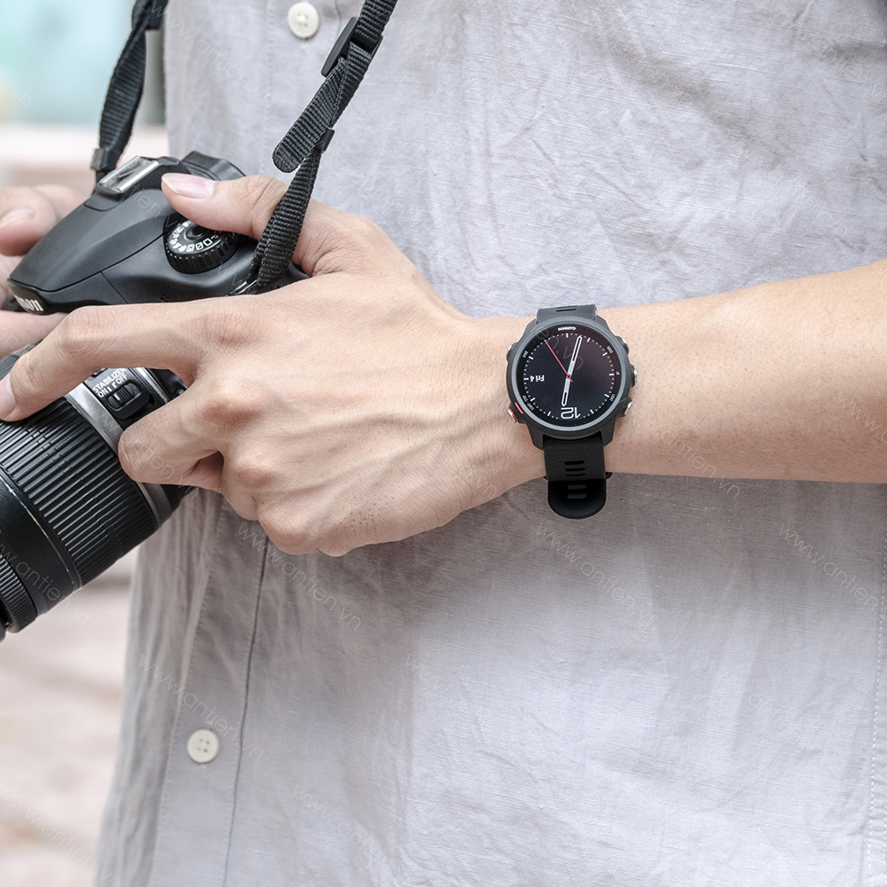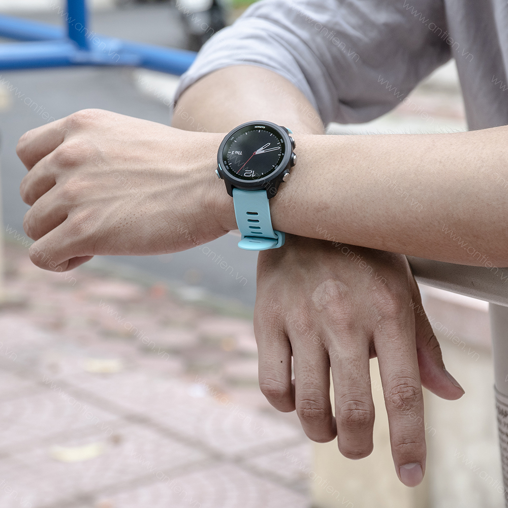 Dây đeo của chiếc Forerunner 245 Music được hoàn thiện bằng silicon với bề rộng thân dây 20 mm, phù hợp với tay của cả nam và nữ. Đồng hồ Garmin Forerunner 245 Music hiện có 3 màu là Đen, màu xanh Aqua và đỏ Lava Red cho bạn lựa chọn.