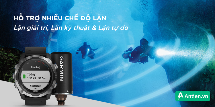 Đồng hồ Garmin Descent Mk2 mang tới nhiều chế độ lặn: lặn mang tính giải trí, lặn kỹ thuật & lặn tự do cho các lần lặn sử dụng một hoặc nhiều bình khí thở (bao gồm một bình dưỡng khí/ nhiều bình dưỡng khí/ máy đo/ nín thở/ săn bắt dùng kỹ thuật nín thở/ bình thở đóng mạch (CCR)).