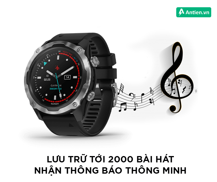 Garmin Descent Mk2 là máy tính lặn được thiết kế dưới dạng đồng hồ với nhiều tính năng thông minh vượt trội và hỗ trợ nhiều môn thể thao chi tiết.
