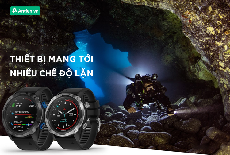 • Với sáu chế độ lặn cũng như hỗ trợ đa GNSS và cảm biến ABC - bao gồm cả la bàn dưới nước - biết mọi phần trong quá trình lặn của bạn từ lúc vào đến lúc ra (theo dõi GPS không hoạt động dưới nước)