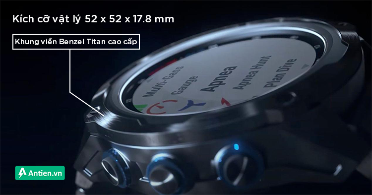 Thiết bị sử dụng vật liệu chế tạo cao cấp với khung bezel titan thời trang và sành điệu. Mặt đồng hồ được làm bằng kính Sapphire, đây là loại kính có độ chống xước cực tốt và chống chịu được những tác động mạnh bên ngoài.
