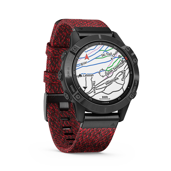 Garmin Fenix 6 - Sapphire - Black DLC with Heathered Red Nylon Band là đồng hồ GPS đa thể thao với nhiều tính năng hỗ trợ như lập bản đồ, lập kế hoạch tốc độ thông minh, âm nhạc ngay trên cổ tay và nhiều hơn thế để bạn có thể thực hiện bất cứ thử thách nào khi sải bước.