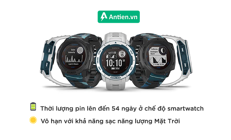 Thời lượng pin cực khủng trên Instinct Solar Surf