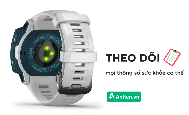Garmin Instinct Solar Surf Edition giúp bạn hiểu rõ hơn về sức khỏe của cơ thể bằng việc dõi theo sức khỏe cả ngày. Nhận dữ liệu nhịp tim cùng với các cảnh báo nếu nhịp tim của bạn quá cao hoặc quá thấp trong khi bạn nghỉ ngơi. Đo nhịp tim của bạn trong quá trình hoạt động, thậm chí dưới nước. Và để theo dõi giấc ngủ hoặc thích nghi độ cao, cảm biến Pulse Ox sử dụng các tia ánh sáng ở cổ tay để đo mức độ hấp thụ oxy của cơ thể bạn, để tính điểm mức độ căng thẳng của bạn, vì vậy bạn sẽ cảm nhận được nếu bạn đang có một ngày yên bình, cân bằng hoặc căng thẳng.