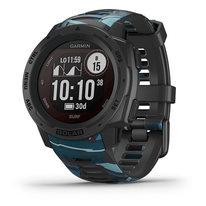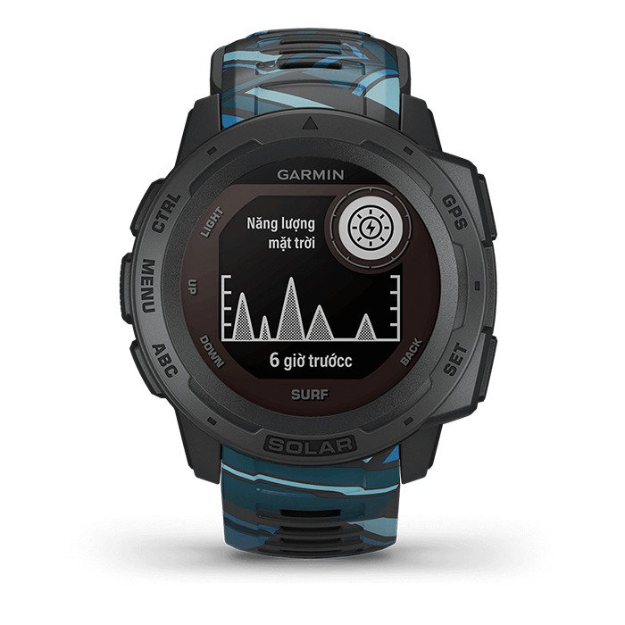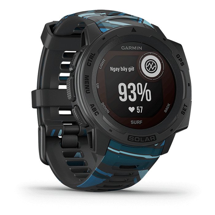 Garmin Instinct Solar Surf Edition là chiếc đồng hồ thông minh GPS với các tính năng lướt sóng chuyên dụng cùng tuổi thọ pin đáng kinh ngạc nhờ khả năng sạc bằng năng lượng mặt trời.