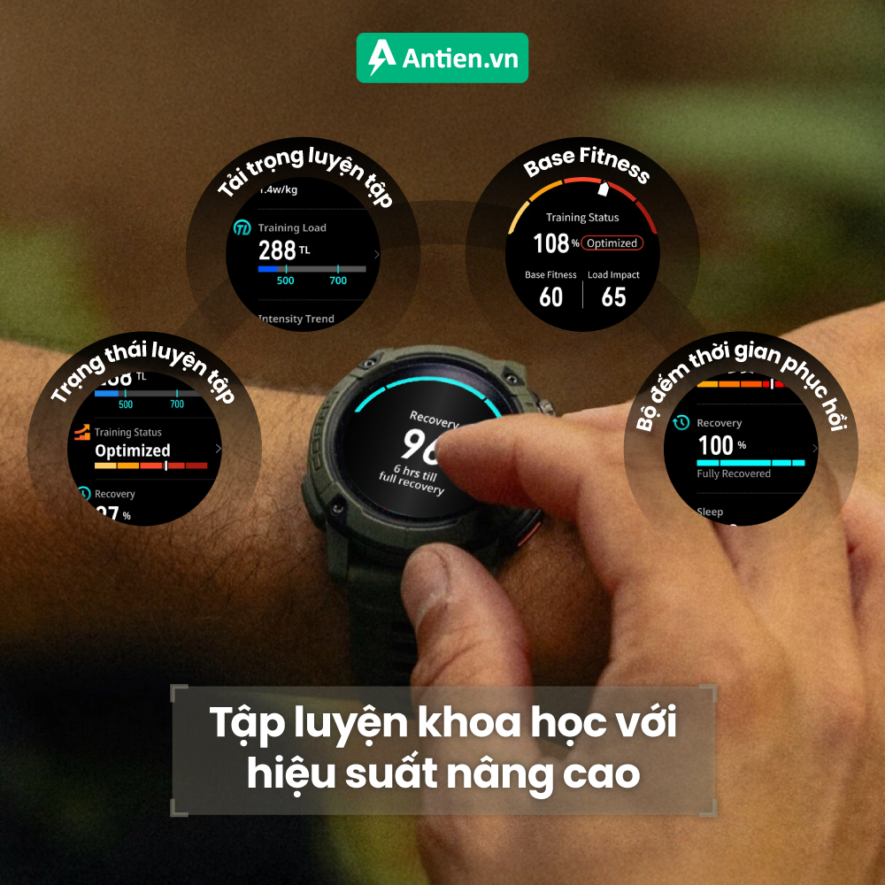 - Bộ đếm thời gian phục hồi: “huấn luyện viên ngầm” nhắc bạn khi nào nên nghỉ, khi nào nên tập chăm chỉ hơn, dựa trên dữ liệu thể chất và tiến trình phục hồi của cơ thể.