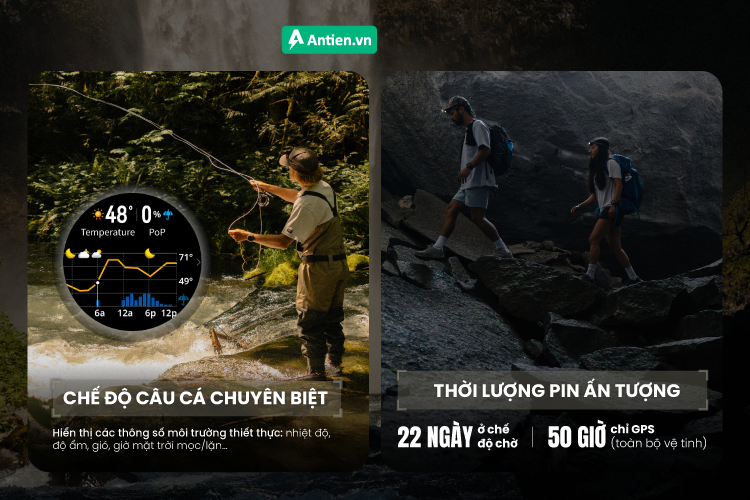 Không chỉ dành cho chạy bộ hay leo núi, smart watch NOMAD còn cực kỳ hữu ích với những ai đam mê câu cá. Đồng hồ sẽ cung cấp thông số môi trường theo thời gian thực, giúp bạn biết được thời điểm lý tưởng để thả cần, từ đó tăng cơ hội thành công.