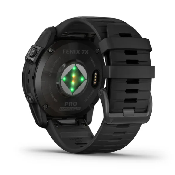 Dòng sản phẩm Fenix 7X Pro được trang bị cụm cảm biến tim thế hệ thứ 5 - Garmin Elevate V5 hoàn toàn mới với số lượng đèn và diode nhạy sáng tăng lên, hứa hẹn mang lại kết quả đọc nhịp tim nhanh chóng, nhạy bén và chính xác hơn so với phiên bản trước đó, đạt mức rất gần với đai đeo ngực.