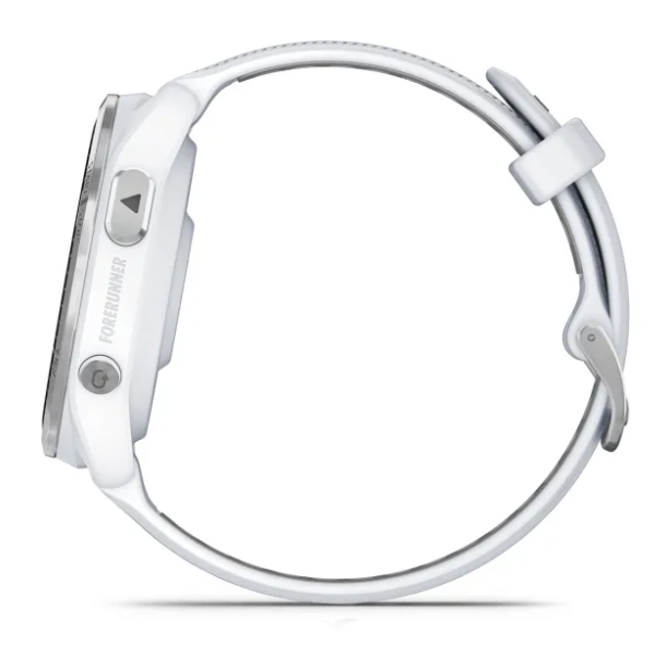 Màn hình Amoled này được tích hợp vào vỏ polyme gia cố bằng sợi và được bảo vệ bằng kính Corning Gorilla Glass DX với đặc tính cứng hơn, chống trầy xước tốt hơn, bao quanh bởi một gờ titan bền bỉ - một vật liệu trước đây chỉ dành riêng cho dòng sản phẩm Fēnix và mang đến vẻ ngoài sang trọng hơn cho phiên bản Forerunner mới này.
