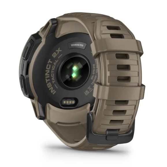 Garmin Instinct 2X Solar Tactical Edition được trang bị kích thước 50 x 50 x 14,7 mm, sử dụng vỏ và gờ polymer gia cố bằng sợi quang, dây đeo silicon 26 mm được thiết kế cho chu vi cổ tay 145 - 228 mm. Đồng hồ thông minh GPS táo bạo, chắc chắn này được chế tạo theo tiêu chuẩn khắt khe MIL-STD-810 của quân đội Hoa Kỳ về khả năng chịu nhiệt, chống sốc và chống nước 10ATM - nghĩa là chúng có thể nhúng sâu 100 mét dưới bề mặt mà không bị hư hại.