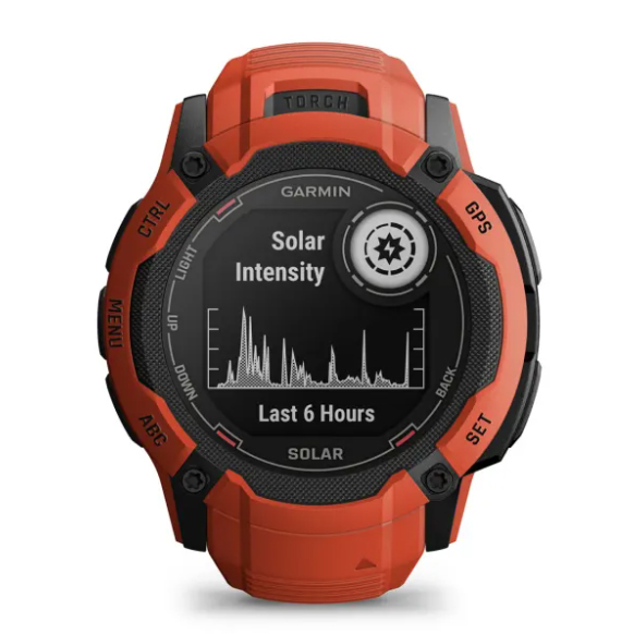 Ống kính Power Glass ™ sạc bằng năng lượng mặt trời giúp kéo dài tuổi thọ pin trên Instinct 2X Solar, tạo ra nhiều năng lượng hơn 50% so với Instinct 2 Solar đời trước.