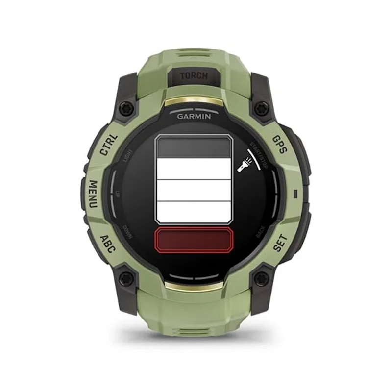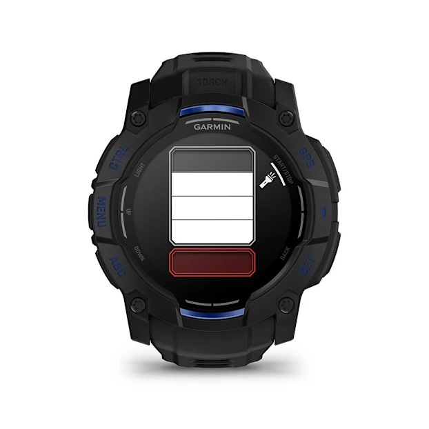 Đèn pin LED đa chế độ lần đầu được tích hợp trên tất cả các phiên bản Instinct 3, không chỉ ở dòng Solar. Đèn này có nhiều mức sáng và chế độ nhấp nháy rất hữu ích cho các hoạt động ban đêm như cắm trại, đi bộ đường dài hoặc tìm đồ vật trong bóng tối. Đồng thời giúp dễ dàng quan sát bản đồ, la bàn, hoặc các công cụ khác mà không cần mang theo đèn pin riêng và cải thiện khả năng nhận diện khi đi bộ đường dài hoặc chạy trail vào sáng sớm hoặc tối muộn.